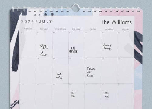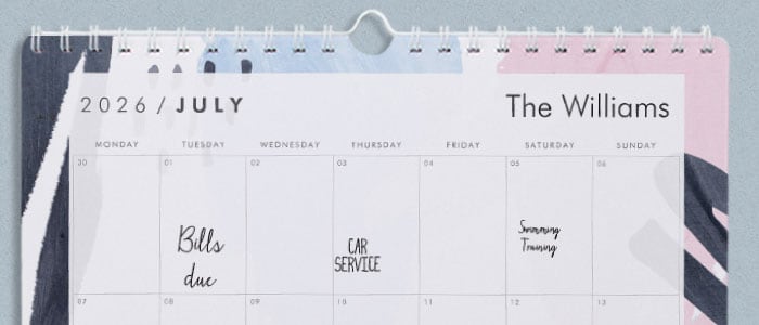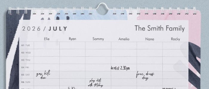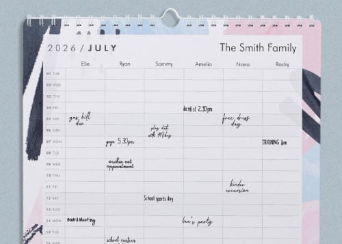 Get organised in style with Opiqo's Personalised 2026 Calendars & Family Planners. Over 100 designs, photo cover option, starting month picker & add up to 6 names + photos in column layouts. Create custom monthly planners, schedulers, agendas, charts & more!