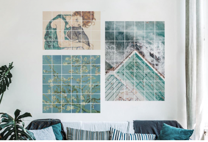 We print your photos in HD colour onto a fine weave, subtle textured fabric. This special material has a beautiful satin finish, doesn’t damage your walls and can be easily removed and repositioned many times over. No more nails, no more alignment & spacing headaches, no more damaged walls!